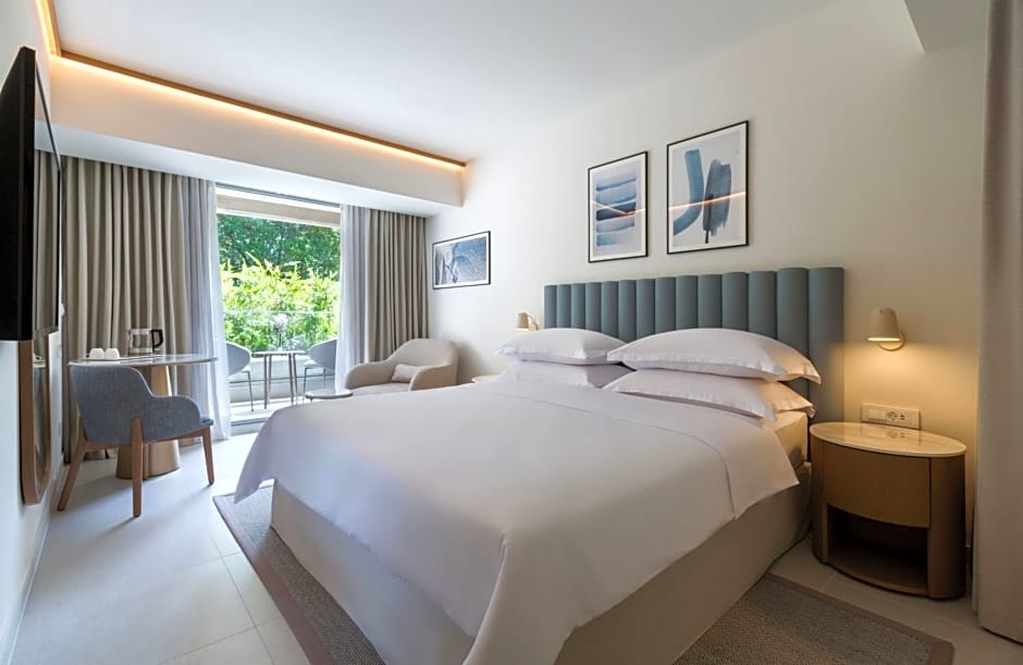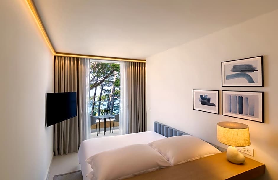 This double room features a mini-bar, seating area and flat-screen TV. This comfortable room is located on the ground floor, in a quiet part of the hotel. When you go out on the large terrace, you will feel the enticing scent of the sea the rooms are facing.